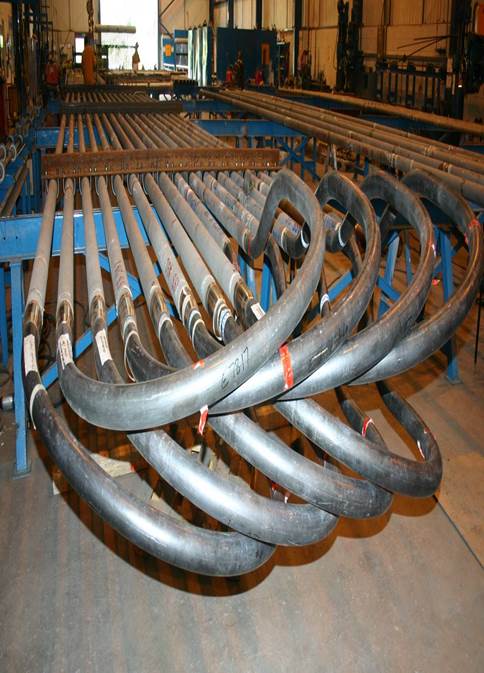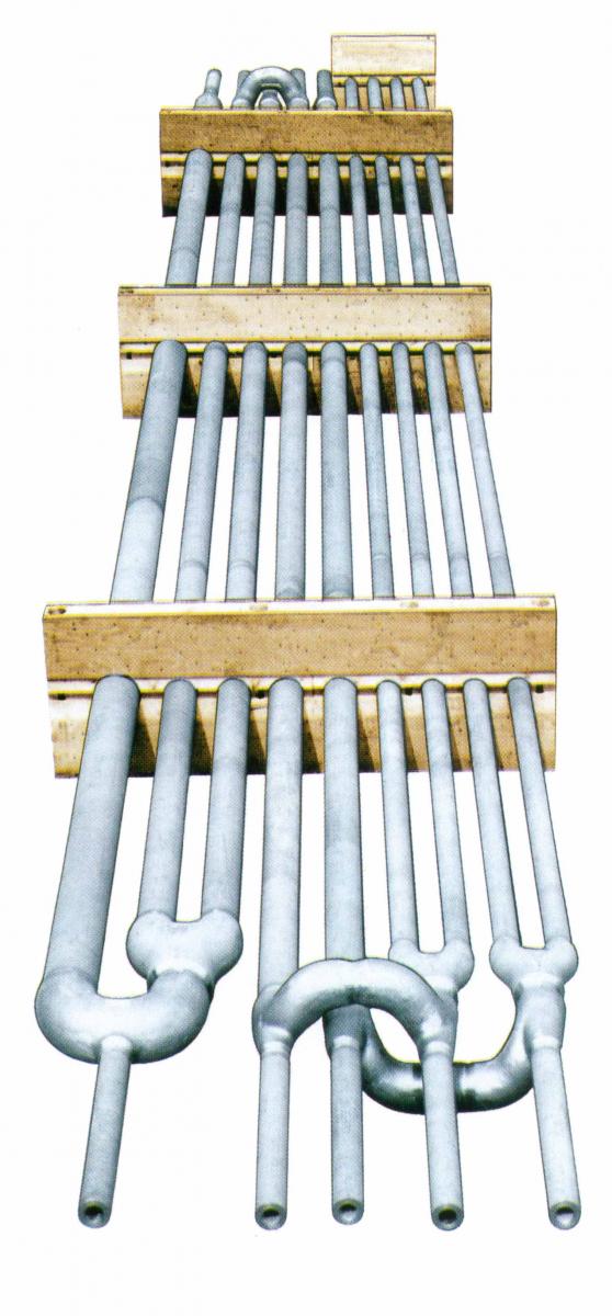 Coils for steam crackers contain straight or inductively bent centrifugally cast tubes and if necessary, cast fittings which are welded to form a unit. Individual pipe segments of 4-6 metres in length are bored and welded to a total length of 12-14 metres. The coils or smaller components are tested by us, delivered with all necessary certificates and finally welded/completed to a pressure vessel by the customer in the furnace. The components can be manufactured in all heat-resistant materials. Preferably, however, the micro-alloyed and proprietary materials of our Paralloy are used. The latest development generation is the aluminium-containing material Optim-AL, which, thanks to the formation of an inert aluminium oxide layer, offers exceptionally good protection against carburisation, less coking especially in gas crackers and a considerably longer service life overall. The requirements of the Pressure Equipment Directive or Health and Safety are met, as are extensive documentation of the required tests, certificates and individual expert opinions.
